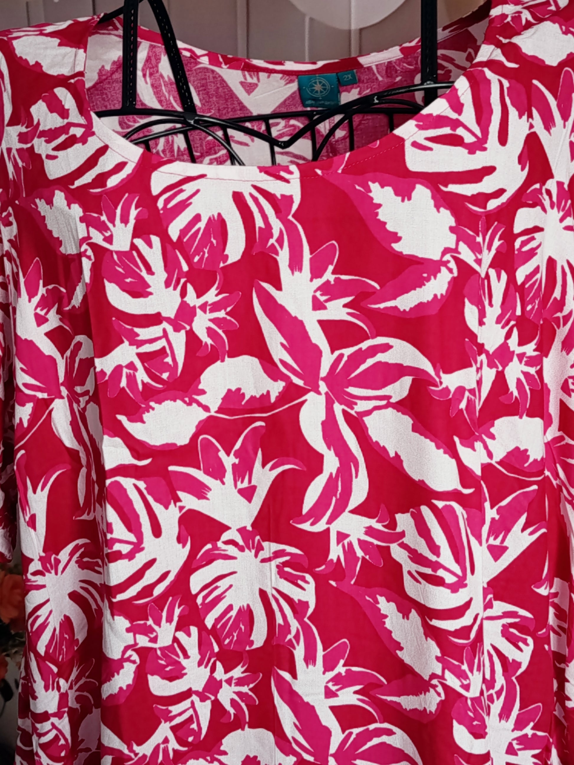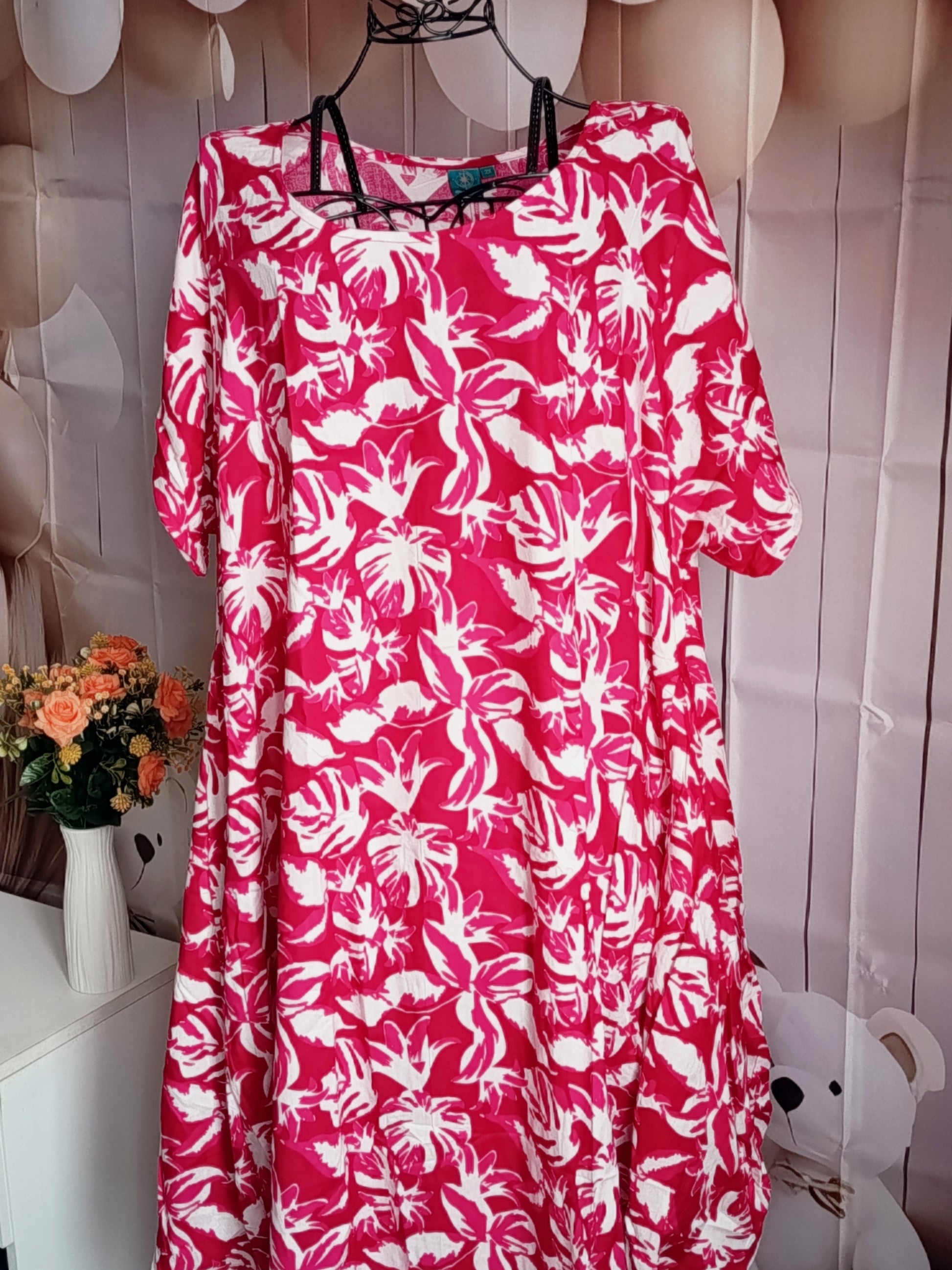 Robe Grande Taille en viscose, blanc et rose, taille 52-54, N3
